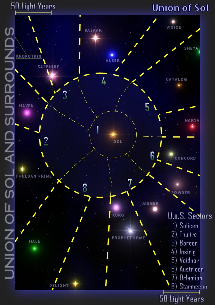The Union of Sol rests at the core of humanity. The hub between all of the stellar nations, it remains a center for trade, diplomacy, and intellectual pursuits. Whatever other stellar nations may claim about their place in the galaxy, man is Solar. Humanity has not sailed so far or so wide as to forget its origins, and Earth is the mutual center. And it shall remain that way, so say the Solars. That Solars are arrogant nationalists has never been disputed. Neither has the nation's place in humanity's past and present.